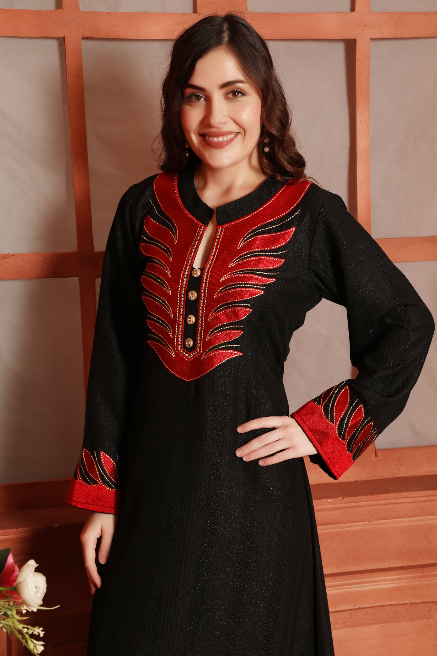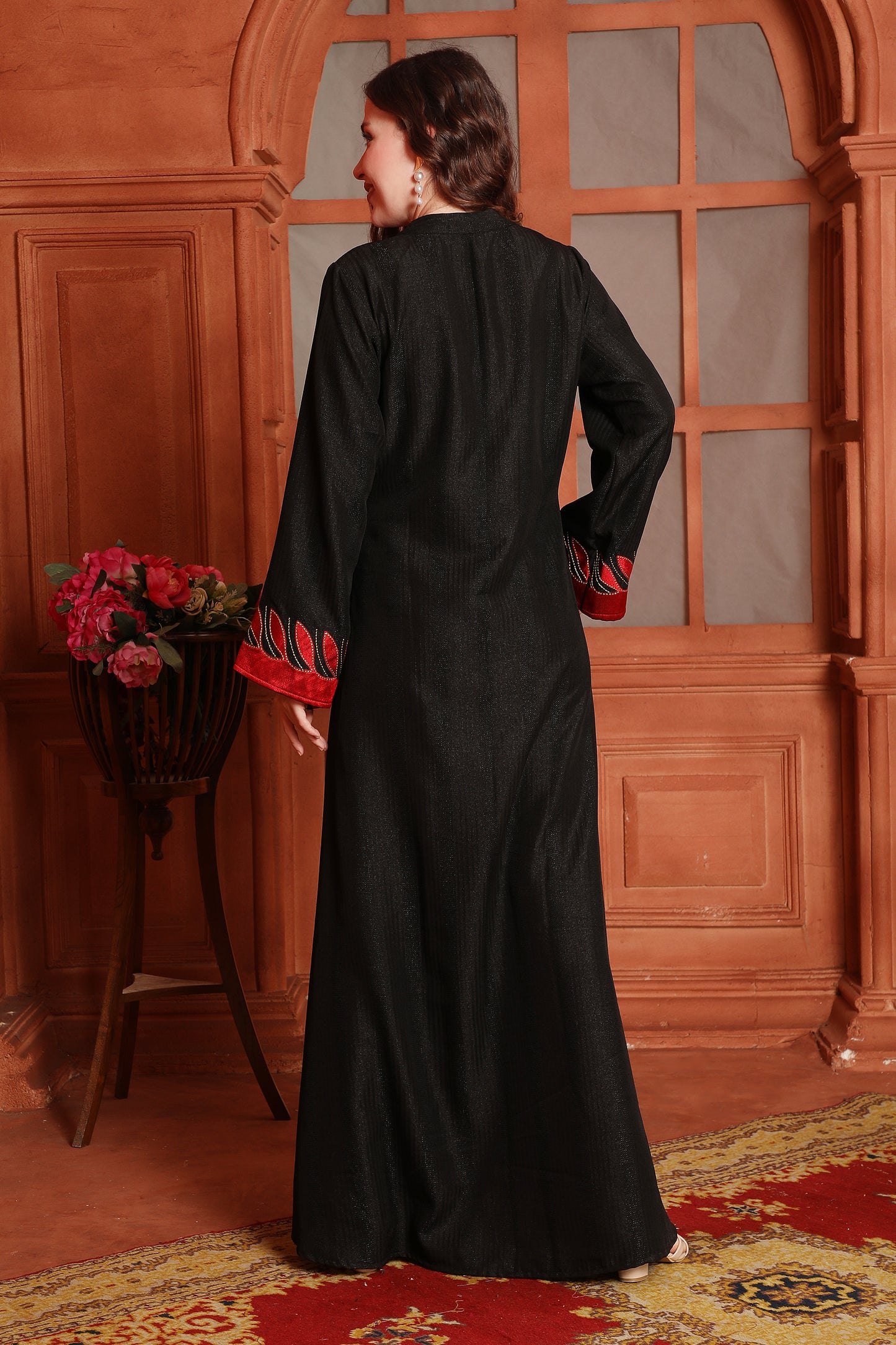 Designer Jalabiya in Black with Red Embroidery and Buttons