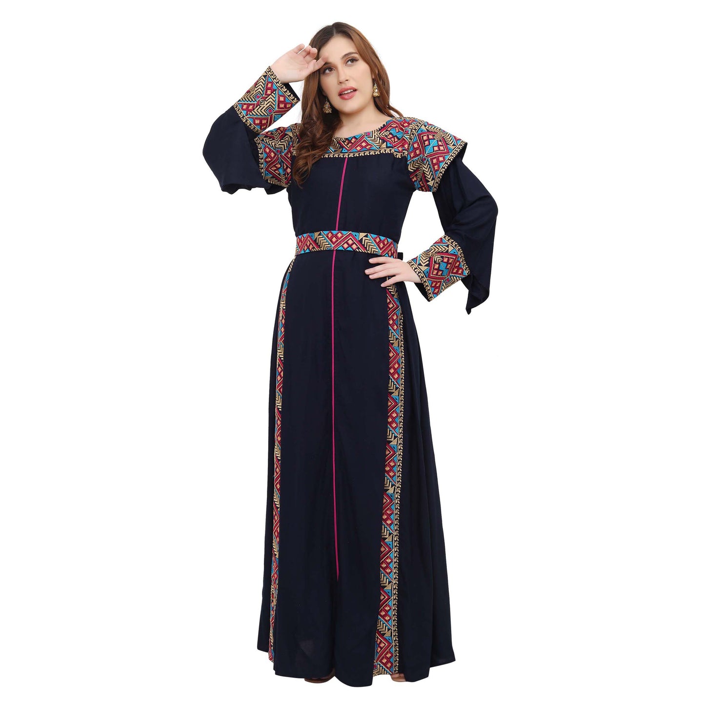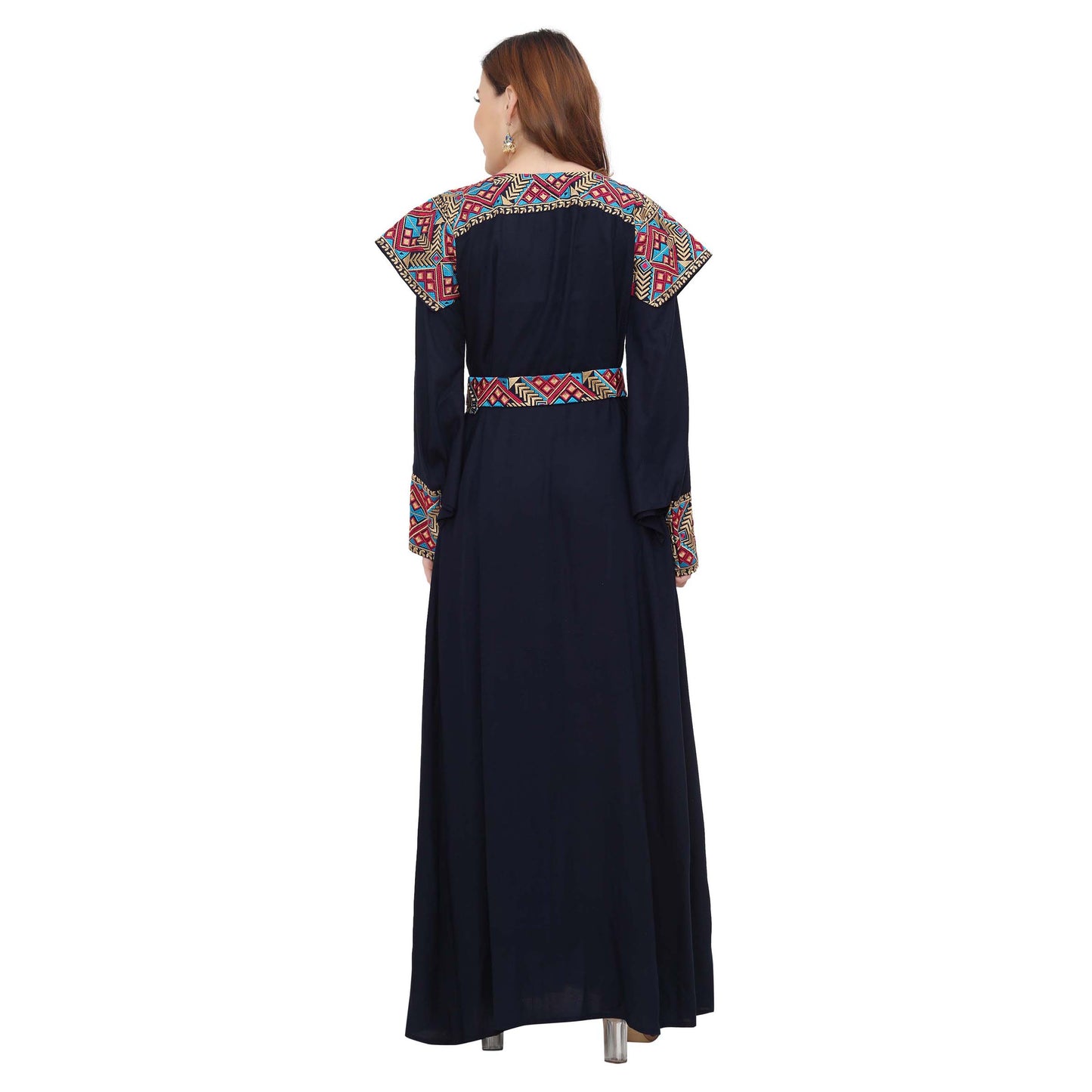 Traditional Kaftan in Multicolor Embroidery with Cap Sleeve - Maxim Creation
