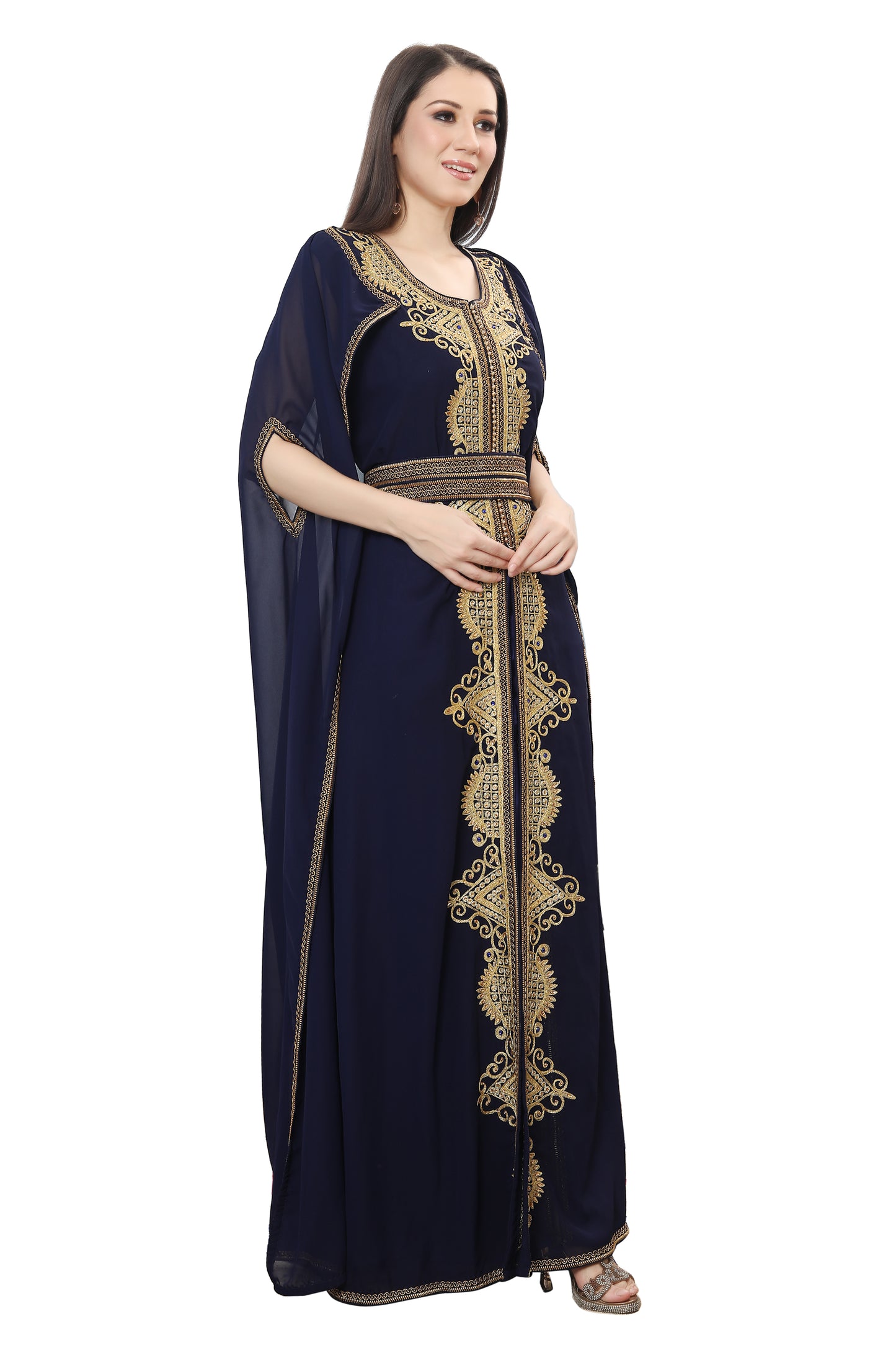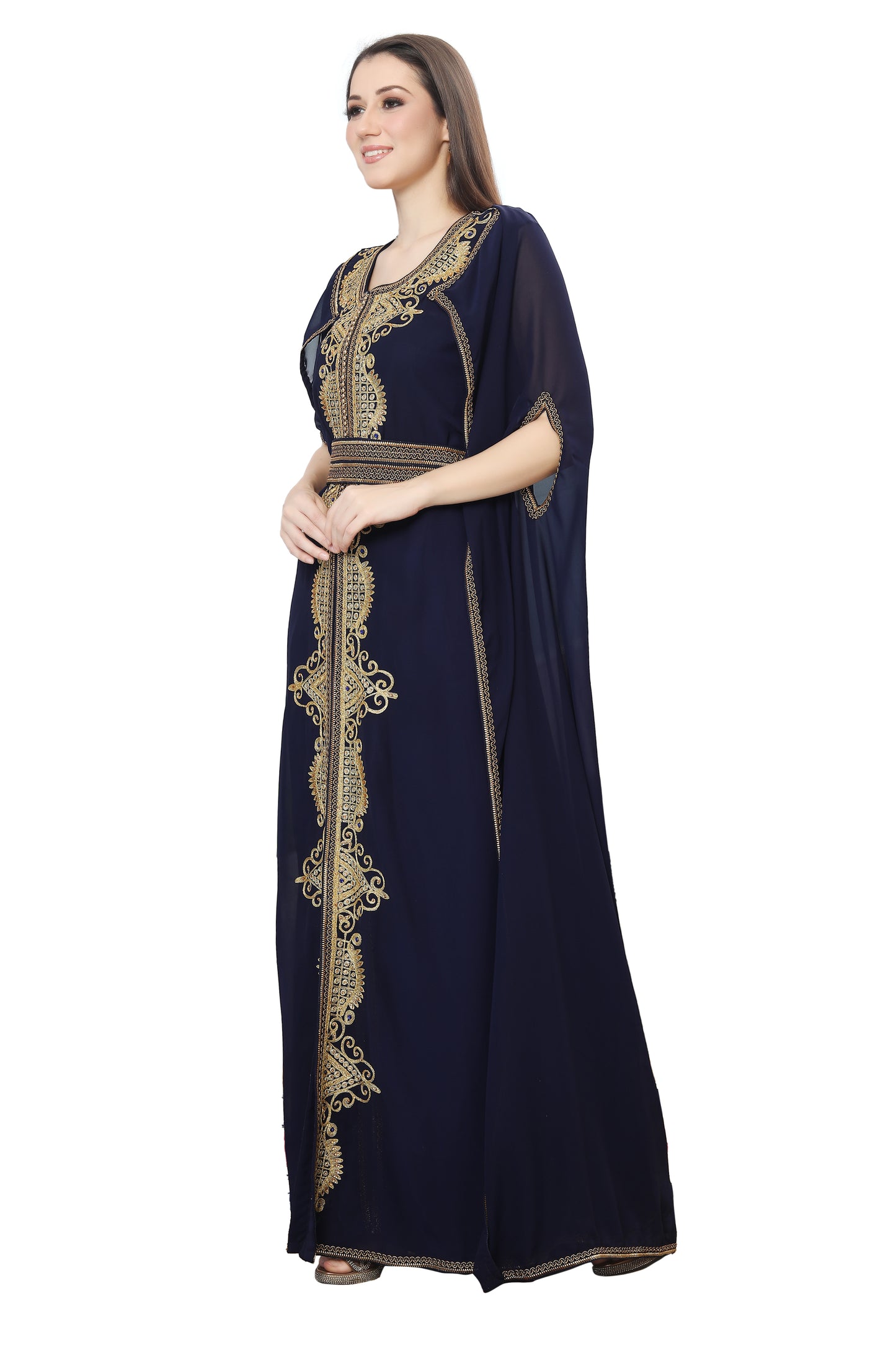 Navy Blue Karakou Algerian Caftan Mermaid Gown - Maxim Creation