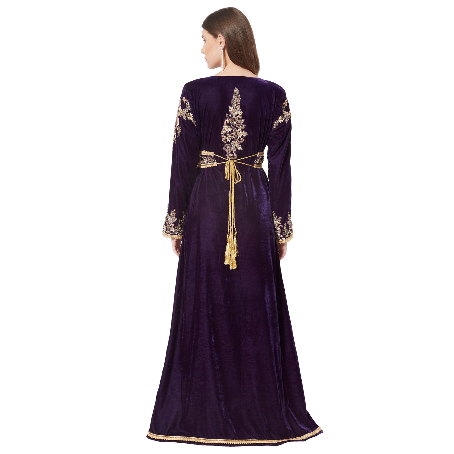 Designer Takchita Caftan Purple Velvet Wedding Gown - Maxim Creation