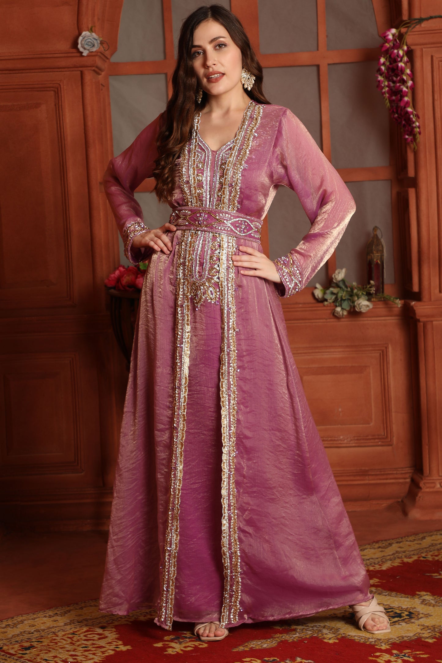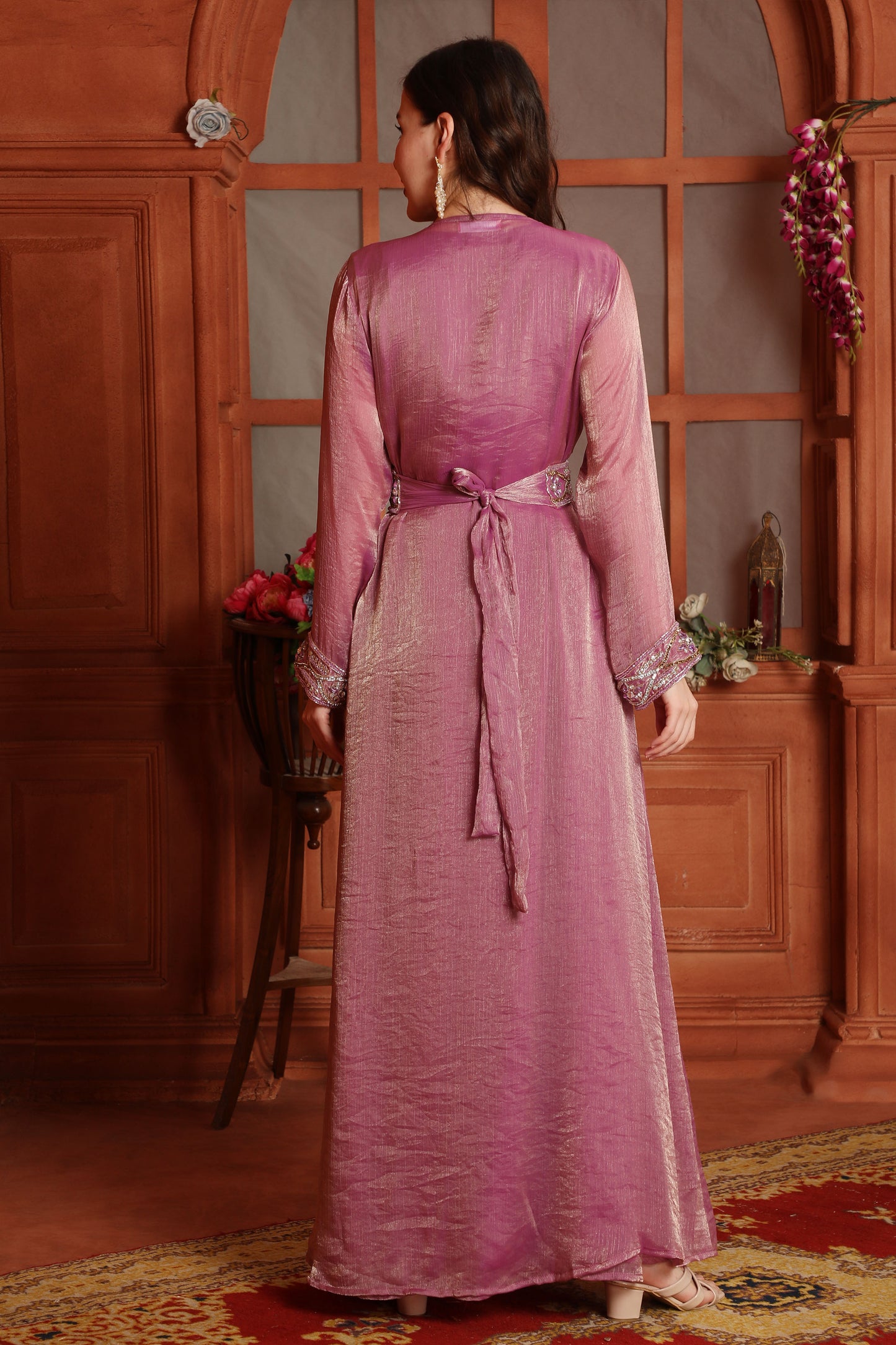Hand-Made Pink Wedding Gown with Hand Embroidery